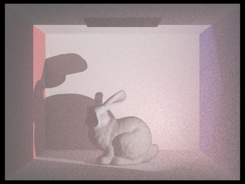 As we know that rays that pass through a medium lose energy due to absorption and out-scattering and gain energy due to in-scattering. We represent the scattering interaction through σs and the absorption interaction through. Beer-Lambert's Law \[T_{r} = {e^{-\sigma_{t}d}}.\] gives us the attenuation of the light traveling through some distance d where \[\sigma_{t} = {\sigma_{a} + \sigma_{s}}.\]As we are only dealing with homogenous mediums for now, the density term is constant. Just like how we use BSDFs for surface interactions, for media interactions we use a Phase Function since the outgoing direction can now be scattered in all directions vs just the hemisphere of directions in surface interactions. For isotropic volumes the phase function is simple being 1/4π as it is equally scattered in all directions. However, for anisotropic volumes we use the Henyey-Greenstein Phase function \[p(\theta) = {{1 \over 4\pi}{{1 - g^2} \over [1 + g^2 - 2g*cos(\theta)]^{3/2}}}.\] that is parameterized by an asymmetry factor g controlling back and front scattering.